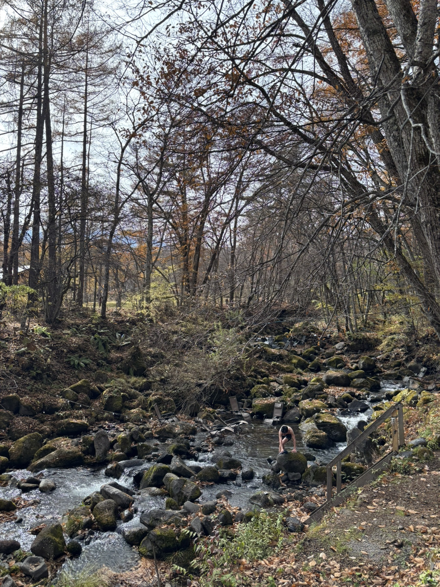 そのまま横の川での水浴び。そして、大自然の中での外気浴。