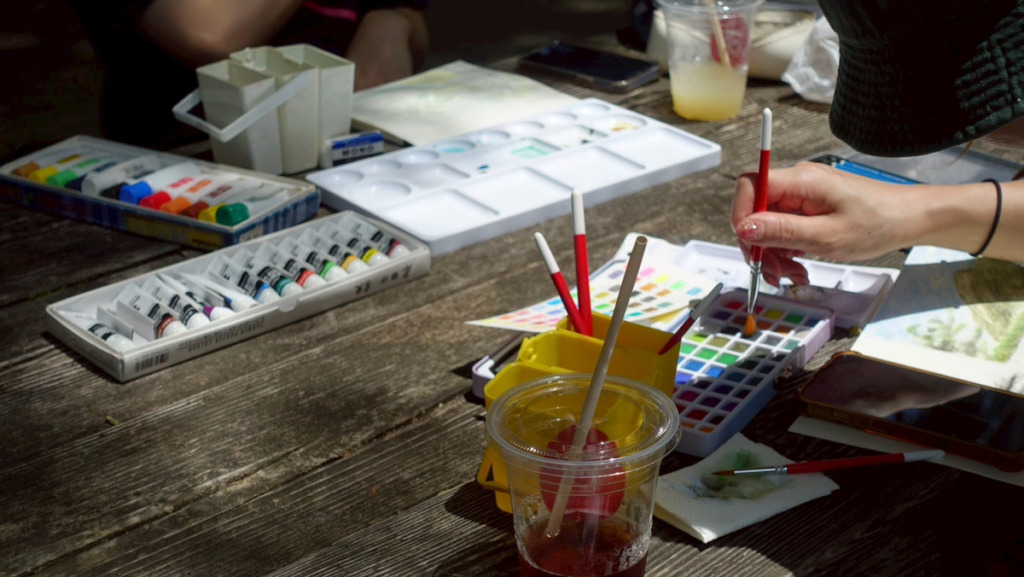 外でスケッチをしていると、人に見られるのが恥ずかしいという懸念点がありますが、