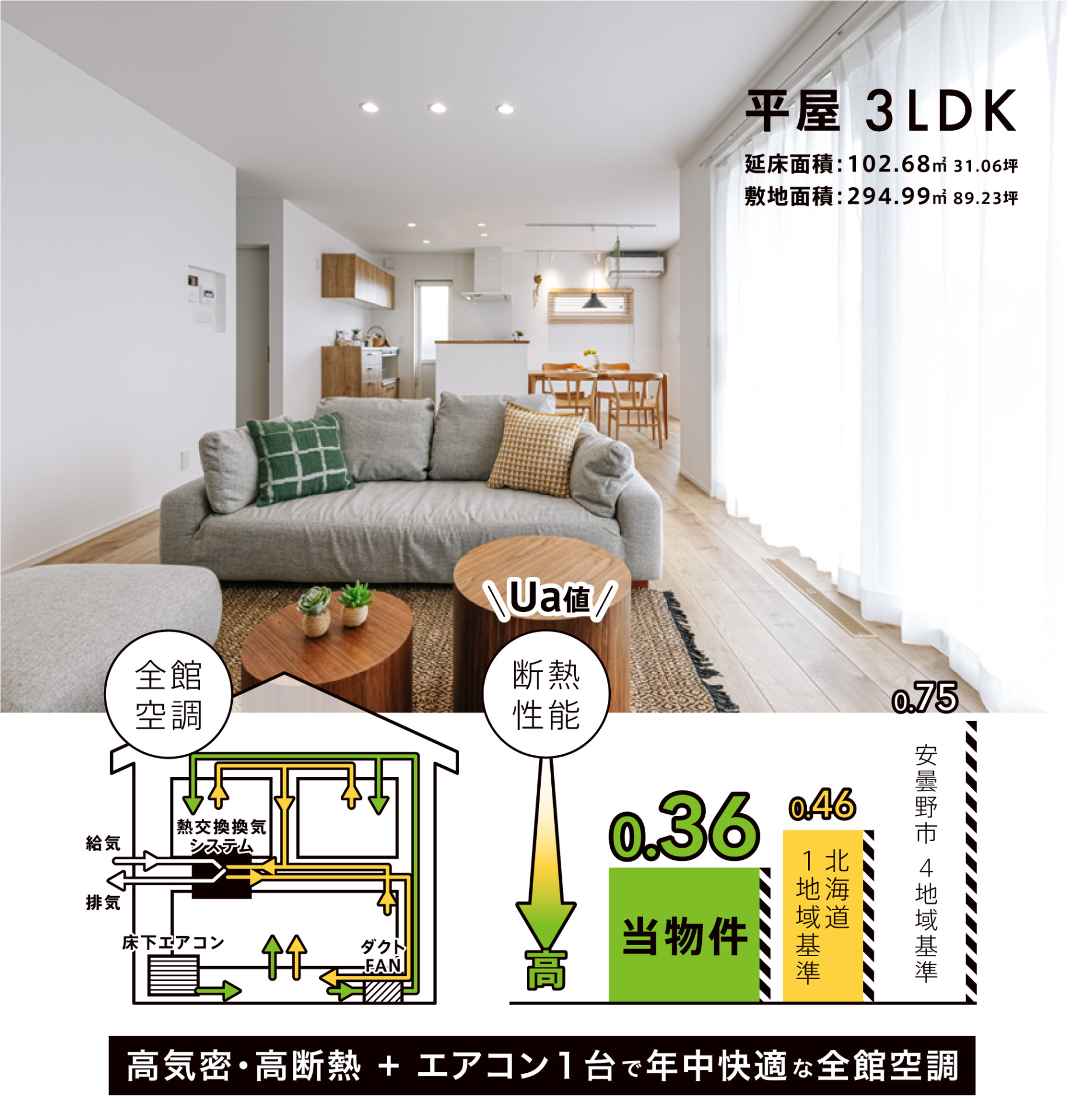 こちらの住まいはUa値: 0.36という非常に優れたスコアを達成。